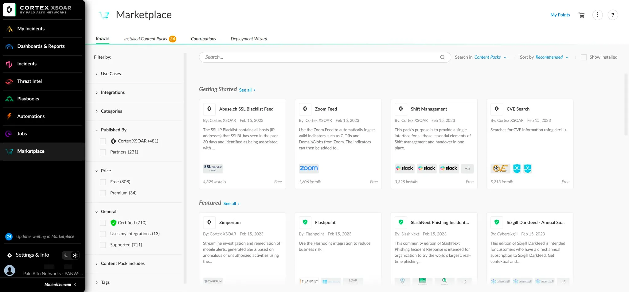900개 이상의 사전 구축된 통합 및 자동화 팩. DIY 플레이북을 위한 1,000가지 보안 조치. 코드 없는 자동화를 위한 비주얼 플레이북 편집기 제공
