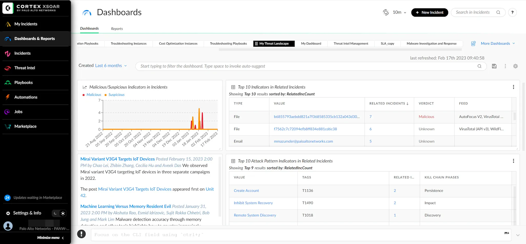외부의 위협을 Incident 에 매핑하여 관리하며 Unit42 를 통해 신뢰성 있는 Threat Intel 을 제공 합니다.