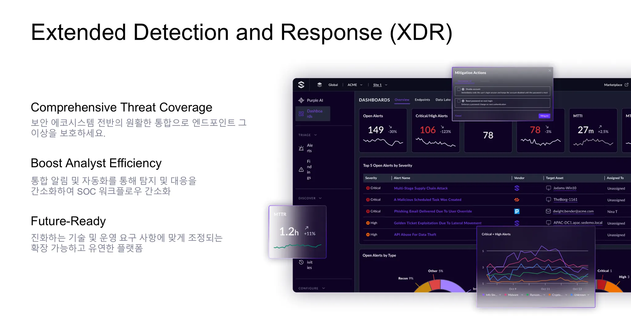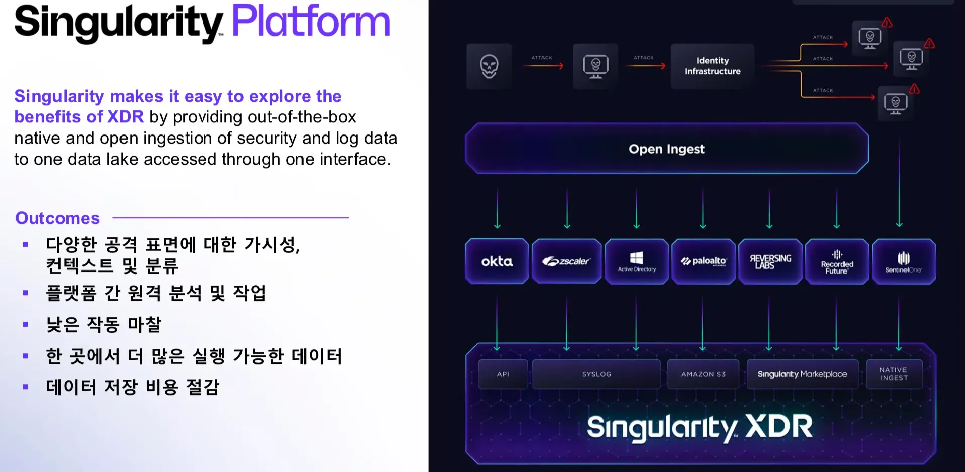 μλν¬μΈνΈ, λ€νΈμν¬, ν΄λΌμ°λ λ± μ¬λ¬ 보μ λ°μ΄ν° μμ€λ₯Ό ν΅ν© λΆμνμ¬ μν νμ§μ λμμ μ§μνλ ν΅ν© 보μ νλ«νΌμ λλ€.